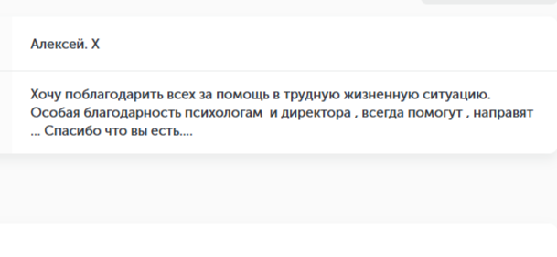 Мне очень помог этот центр! Теперь я знаю что мне нужно от жизни, а что не нужно. Благодарен всем сотрудникам за то, что приняли в этом участие!